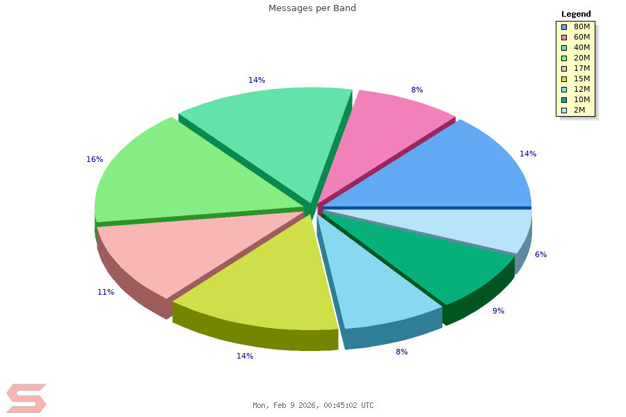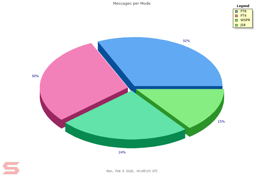 | Feb 08 19:16:45 | 16 | 0.1 | 14074763 | 20M | CQ 9A9A JN75 | 9A9A | FT8 | |||||
